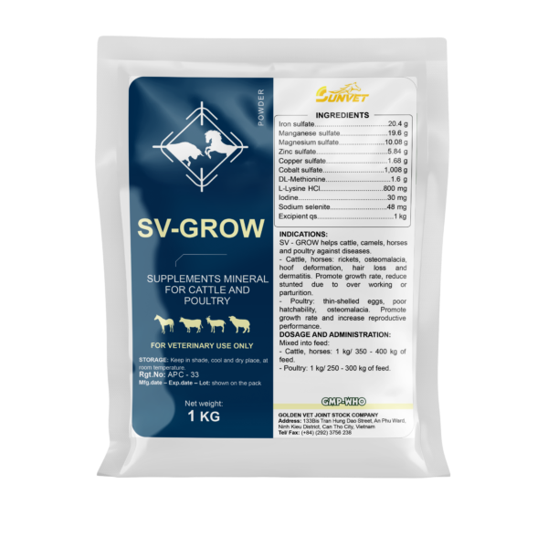 – Cattle, horses: rickets, osteomalacia, hoof deformation, hair loss and dermatitis. Promote growth rate, reduce stunted due to over working or parturition.