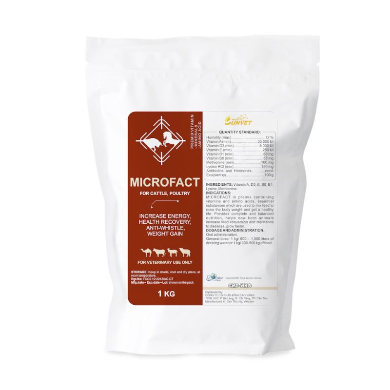 Dissolve in water: 1 kg/ 600 – 1,000 liters of drinking water or 1 kg mix into 300 – 500 kg of feed.