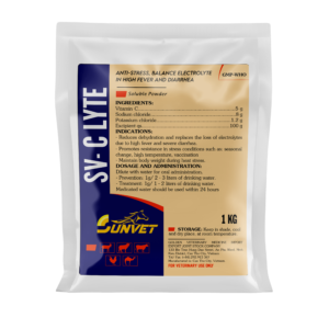 Nutritional supplement and enhancer of organic function, growth, production and health. Recommend as an adjuvant in all infectious diseases, poisoning, convalescence, abrupt temperature change, pre and post-vaccination, dehydration and transport. It acts as a restorative and anti-stress factor against pathogenic cases.